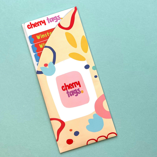 Waterproof and laundry-safe name label sets available in multiple sizes. Perfect for labeling school supplies, water bottles, clothing tags, and lunch containers. Part of the Big Dreamer collection.